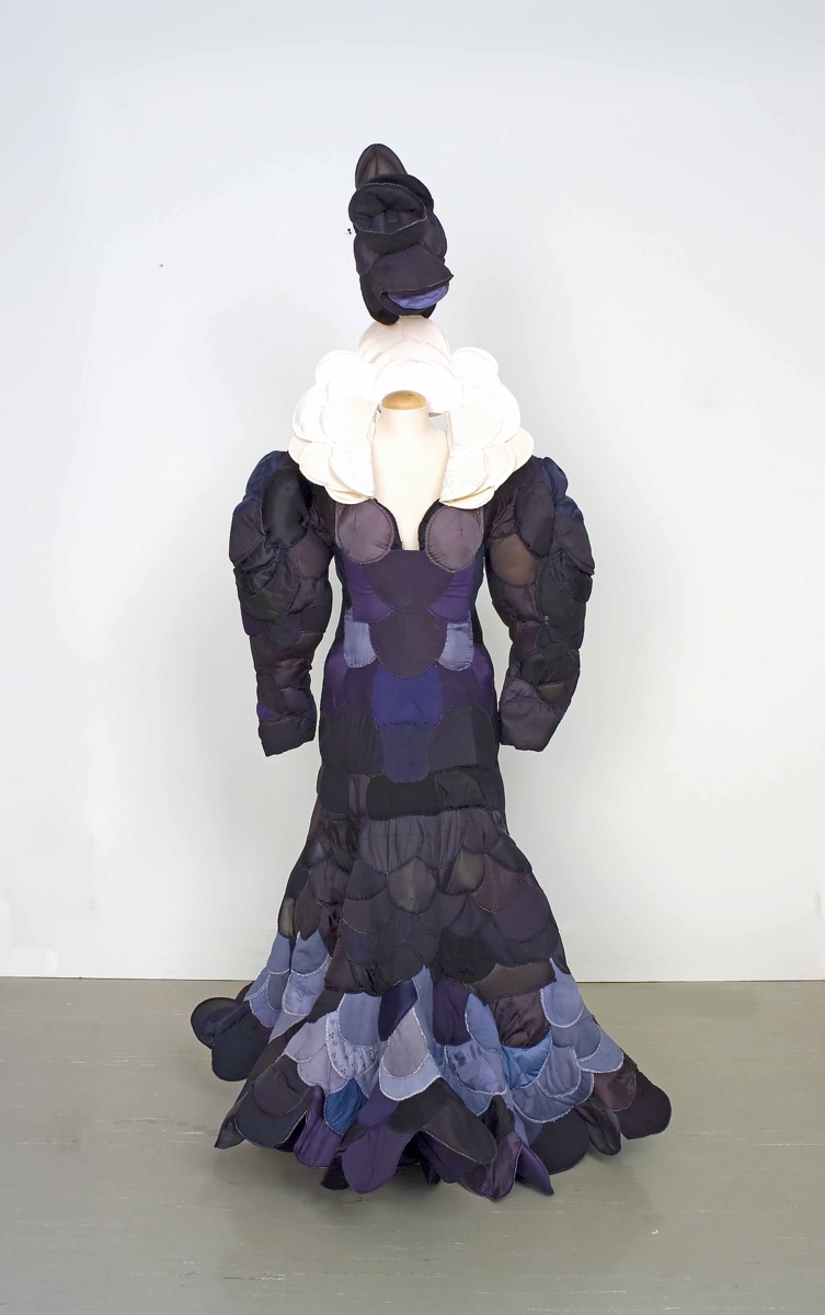 Cecile Clayton-Gouthro. Black Dress, from the installation Connecting at an Unknown Rate, 2000. Shoulder pads. Collection of the Winnipeg Art Gallery; Gift of Steve Gouthro, 2006-233.1 to 3. Photo: Ernest Mayer.