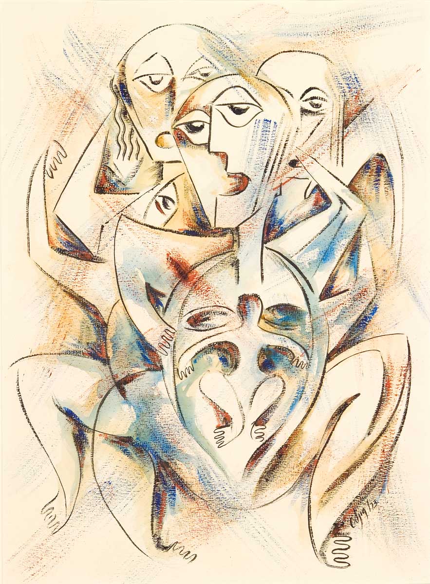 Daphne Odjig. Untitled, 1973. Acrylic, graphite on paper. Collection of the Winnipeg Art Gallery; Gift of Mr. and Mrs. Donald Macfarlane, G-84-319. Photo: Ernest Mayer.